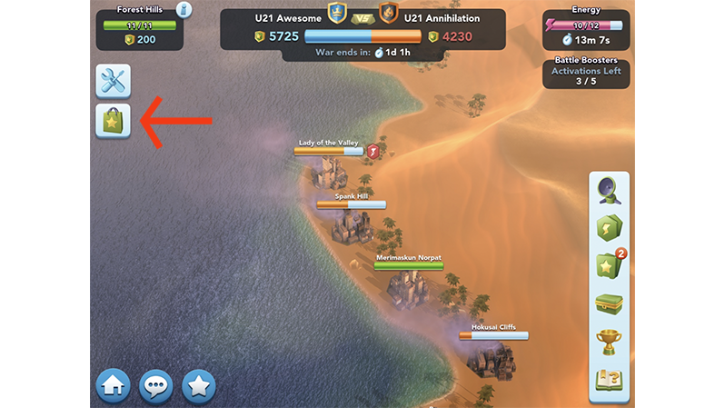 1.Tippe auf das Boost-Symbol in der Ecke unten links, um deine Schlacht-Boosts aufzurufen.